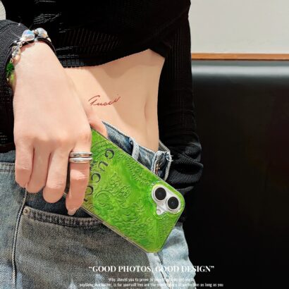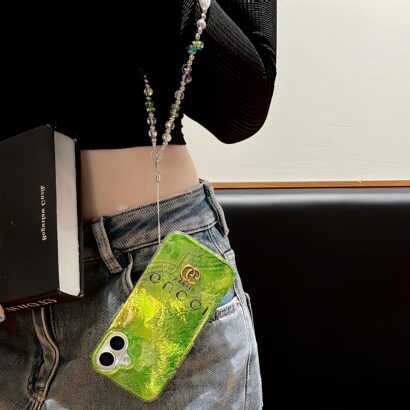This Gucci shiny green TPU phone case with logo is like a dazzling emerald. The shiny surface design is dazzling. and the green tone is fresh and full of vitality. The delicate brand logo is a symbol of quality and fashion. Coupled with that fashionable chain. it adds endless agility and sparkle. Whether for daily use or attending important occasions. it can always make you the focus of everyone’s attention and show your unique fashion taste. Gucci iphone 15 pro max case.